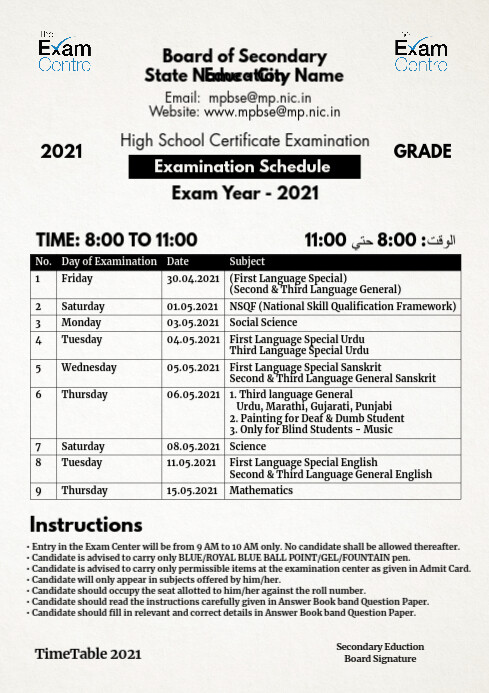 Exam Timetable Template in Pages, Numbers, Word, Excel, Google
